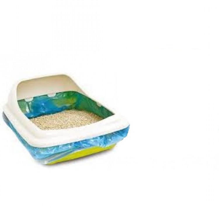 Тоалет за мачки, отворен со дополнителен заштитнен браник кој спречува расфрлање на песокот.