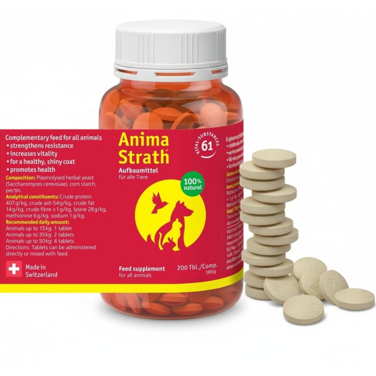 Anima-Strath е 100% природен додаток во исхраната произведен во Швајцарија, дизајниран за подобрување на здравјето и виталноста на сите животни, вклучувајќи кучиња, мачки, коњи, птици и мали домашни миленици.