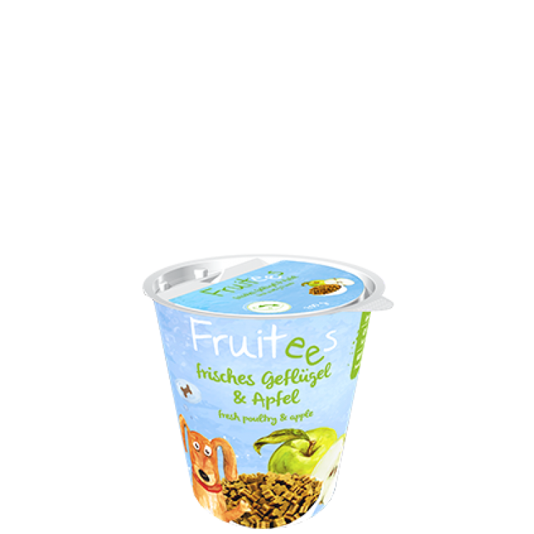 FRUITEES со јаболко се вкусни, сочни и меки бисквити со 20% свежа живина како здраво задоволство за оптимално тренирање на вашето куче во секоја прилика.