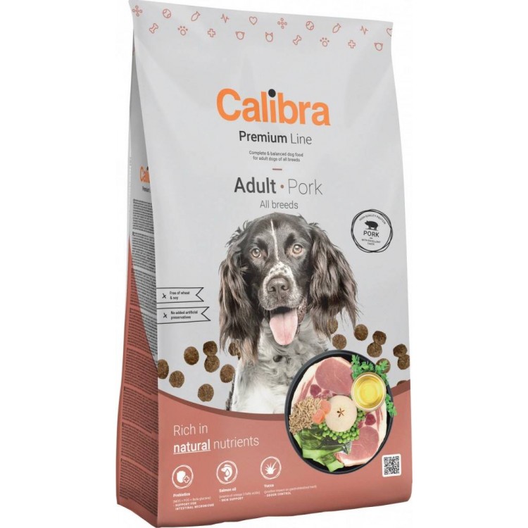 Calibra Dog Premium Adult Pork е формула со свинско за возрасни кучиња од сите раси. Монопротеинската формула е без пченица и пченичен глутен и се карактеризира со одличен вкус.