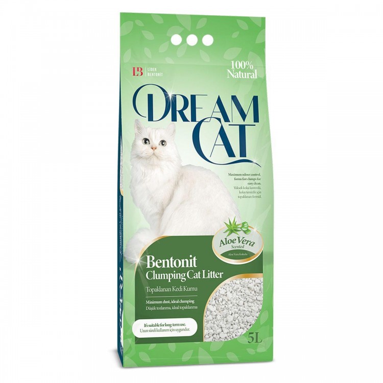 Dream Cat Litter Aloe Vera Scent 5L е висококвалитетен бентонит за мачки, дизајнирано да го одржува вашиот дом свеж и без мирис.